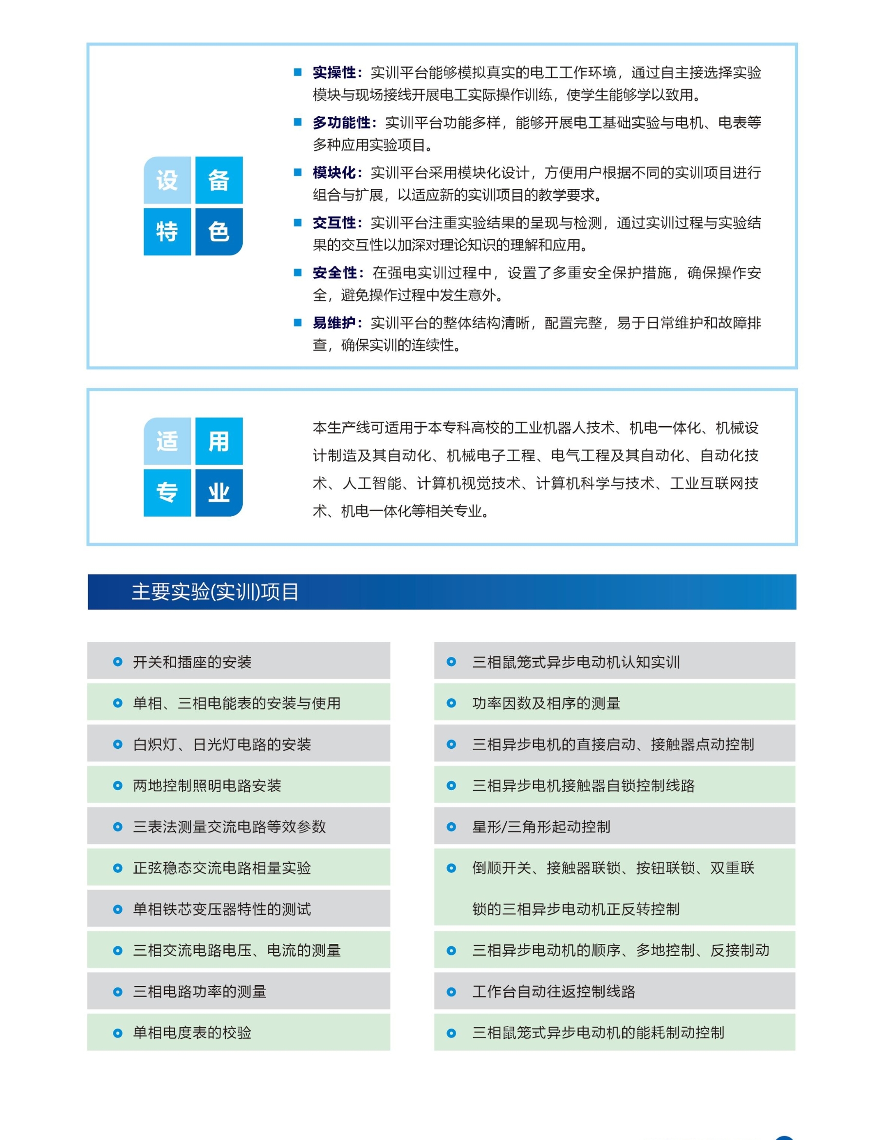 维修电工综合实训平台综合了大中专院校《电工技能训练》《电工实训》《电气控制技术》《电力拖动控制线路与技能训练》等相关课程的实验及实训教学内容而研发。